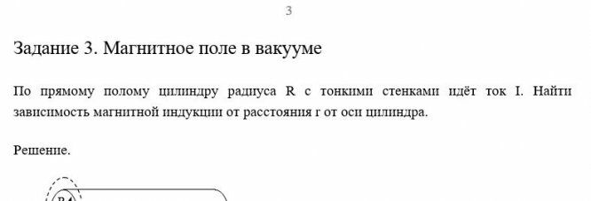 По прямому полому цилиндру радиуса R с тонкими стенками идёт ток I. Найти зависимость магнитной индукции от расстояния r от оси цилиндра