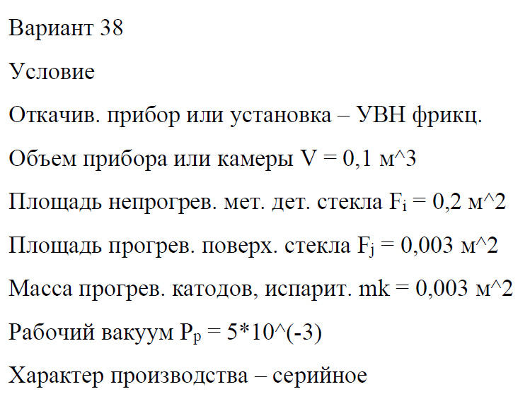 ДЗ: Расчет вакуумных систем технологического оборудования вариант 38