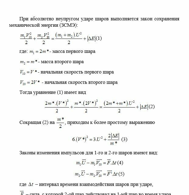 - совместная скорость частиц после абсолютно неупругого удара.