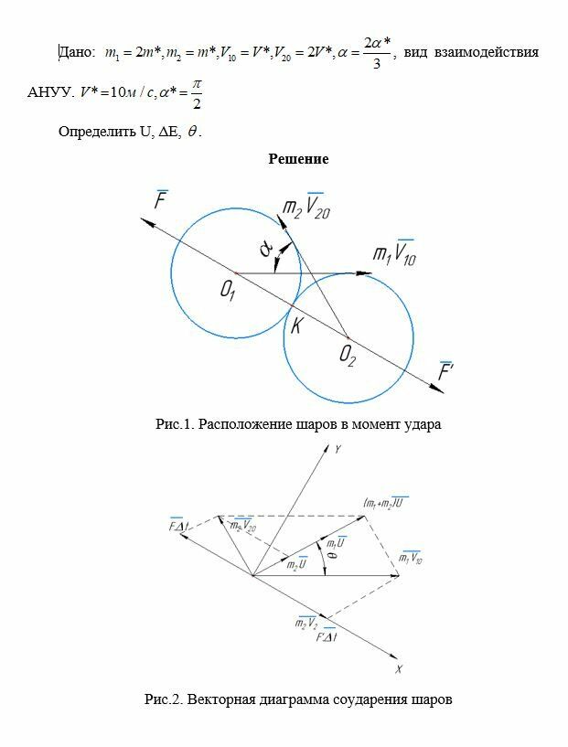 Общие исходные данные: m* = 10-3 кг, V* = 10 м/с, a* = p/2.