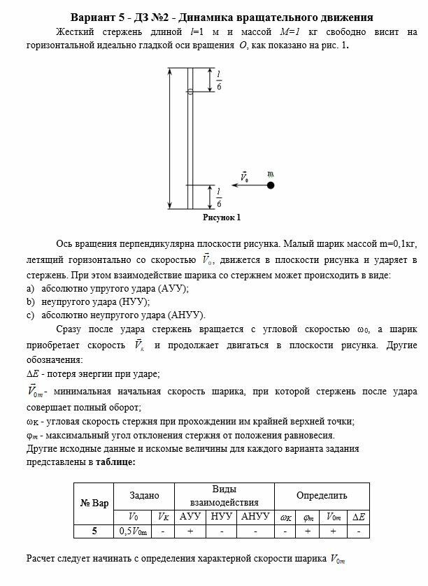 ДЗ 1: Динамика материальной точки + Динамика вращательного движения вариант 5