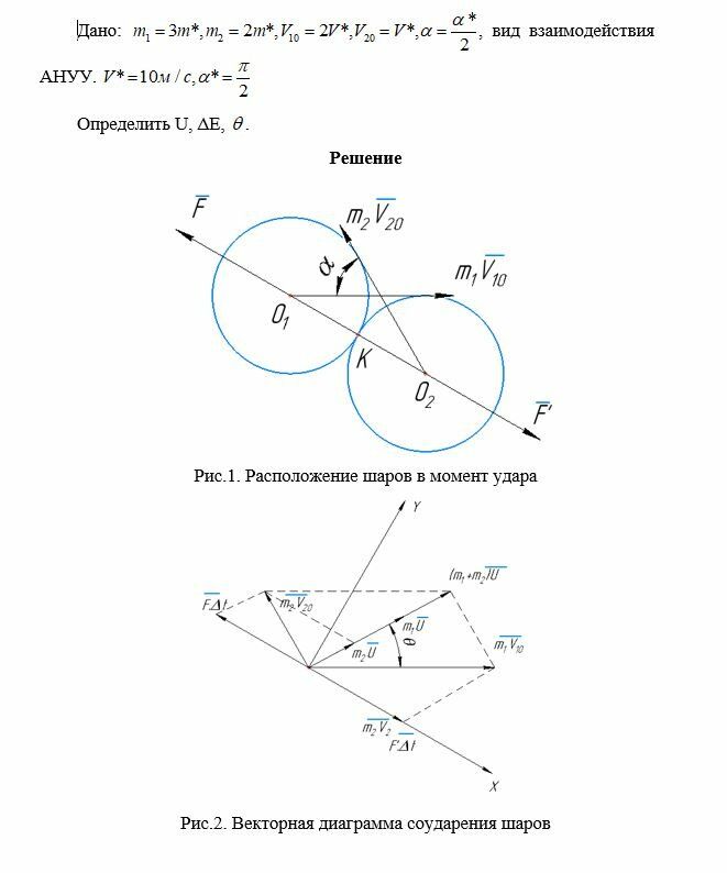 Две гладкие частицы сферической формы с массами m1 и m2, движущиеся со скоростями и , сталкиваются под углом b, как указано на рис.1. Расстояние до места встречи и скорости частиц соответствуют условиям соударения (отсутствию промаха).
