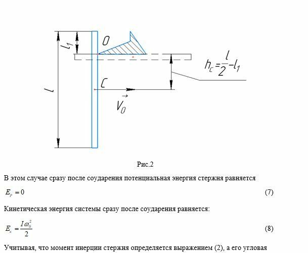 V0m – минимальная горизонтальная скорость стержня, а ω0m – соответственно минимальная угловая скорость стержня, при которой он после удара способен коснуться горизонтальной поверхности преграды;