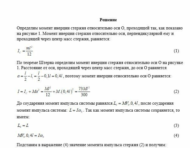ω0 – угловая скорость стержня сразу после удара о ребро преграды;