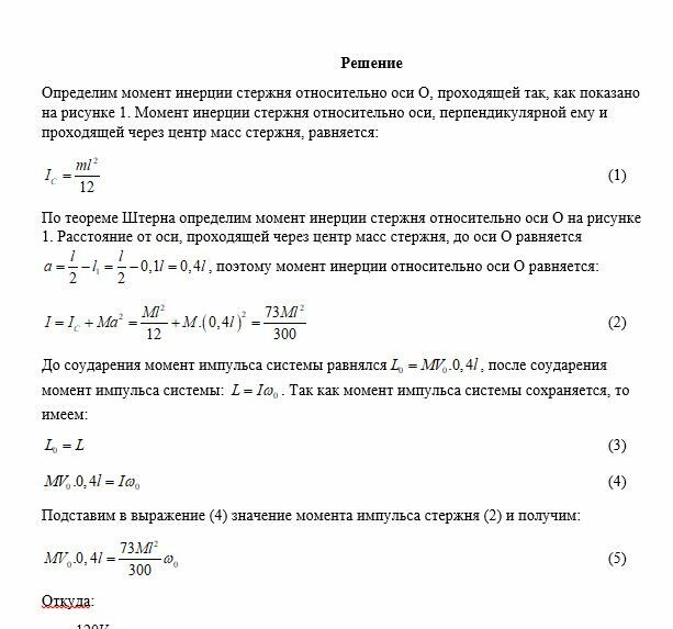 ω0 – угловая скорость стержня сразу после удара о ребро преграды;