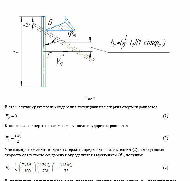 V0m – минимальная горизонтальная скорость стержня, а ω0m – соответственно минимальная угловая скорость стержня, при которой он после удара способен коснуться горизонтальной поверхности преграды;