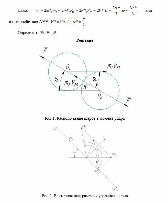 Две гладкие частицы сферической формы с массами m1 и m2, движущиеся со скоростями и , сталкиваются под углом b, как указано на рис.1. Расстояние до места встречи и скорости частиц соответствуют условиям соударения (отсутствию промаха).