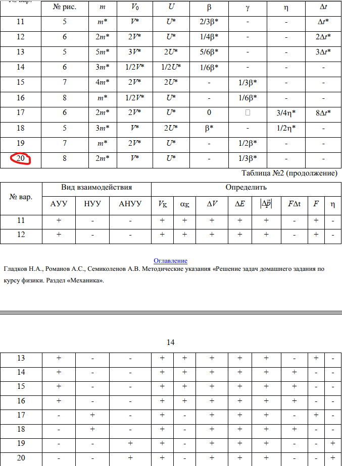 Вариант 20 - ДЗ №1 + ДЗ №2 - Динамика материальной точки - Динамика вращательного движения