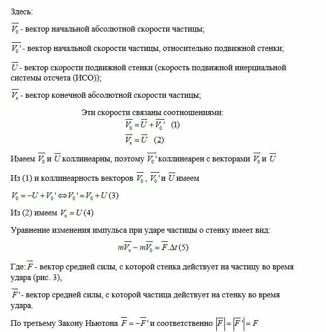F - модуль средней силы, с которой частица действует на стенку во время удара;