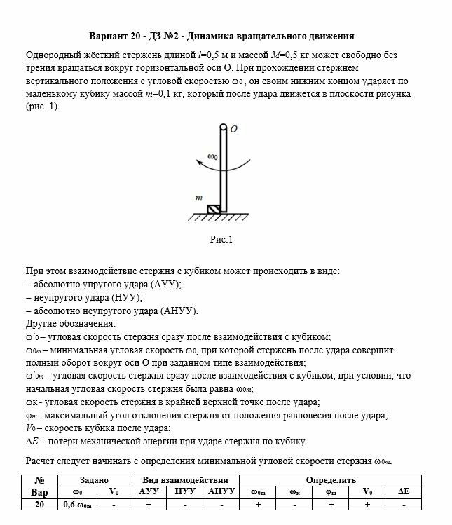 ДЗ 1: Динамика материальной точки + Динамика вращательного движения вариант 20