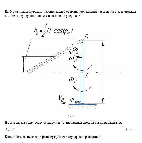 0m – минимальная угловая скорость 0, при которой стержень после удара совершит полный оборот вокруг оси O при заданном типе взаимодействия;