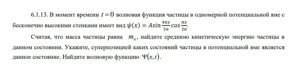 Задача № 6.1.13В момент времени t=0 волновая функция частицы в одномерной потенциальной яме с бесконечно высокими стенками имеет вид