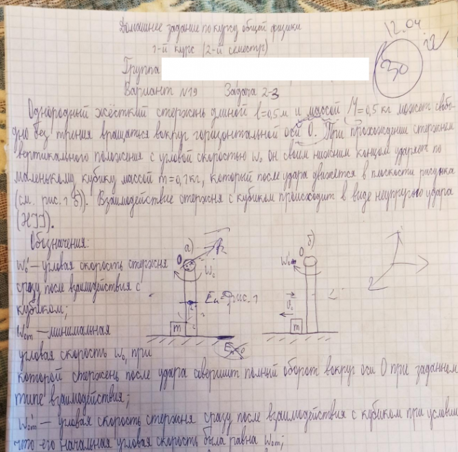 ДЗ 1: Динамика материальной точки + Динамика вращательного движения вариант 19