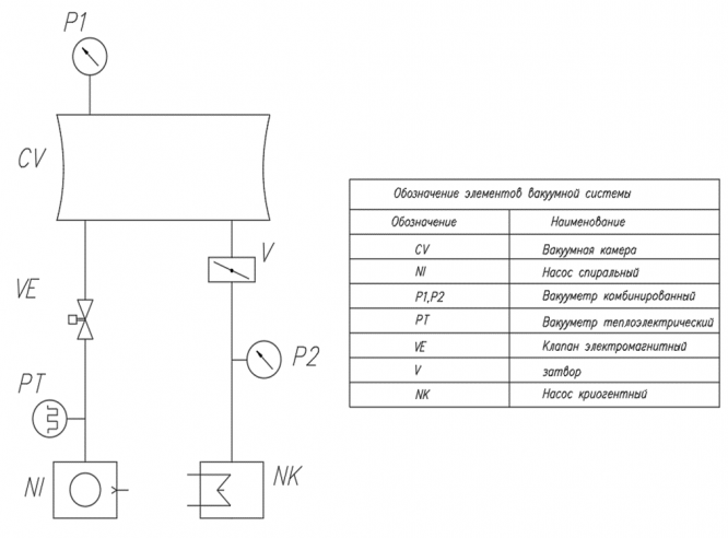 1. Выбрать и начертить принципиальную вакуумную схему установки, эквивалентные схемы откачки.