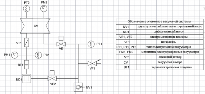 3. Разработать циклограмму работы вакуумной системы (последовательность вкл/выкл насосов, клапанов, затворов).