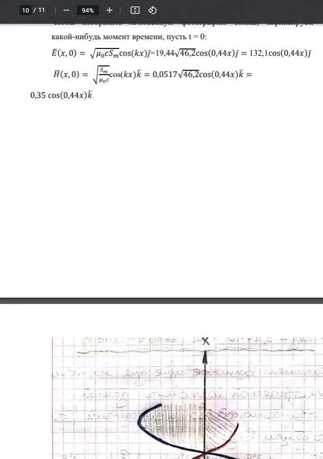 - Записать волновое уравнение для магнитной и электрической компонент рассматриваемой электромагнитной волны и изобразить схематично мгновенную фотографию этой волны.