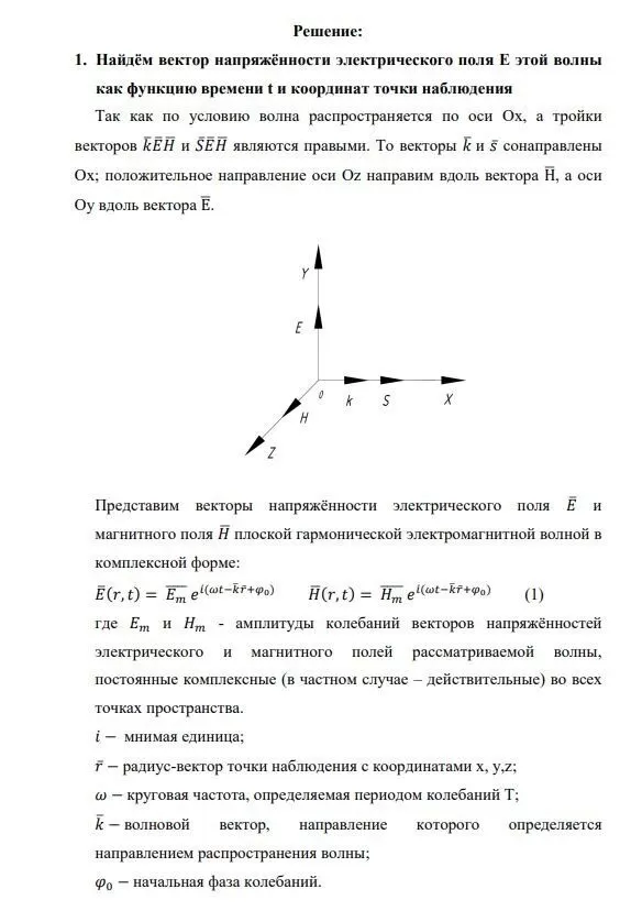 1. Вектор напряжённости электрического поля E этой волны как функцию времени t и координат точки наблюдения;