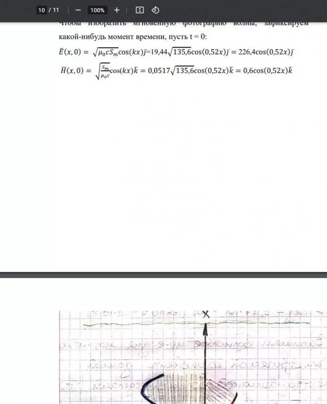 9. Записать волновое уравнение для магнитной и электрической компонент рассматриваемой электромагнитной волны и изобразить схематично мгновенную фотографию этой волны.