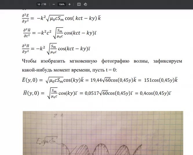 - записать волновое уравнение для магнитной и электрической компонент рассматриваемой электромагнитной волны и изобразить схематично мгновенную фотографию этой волны.