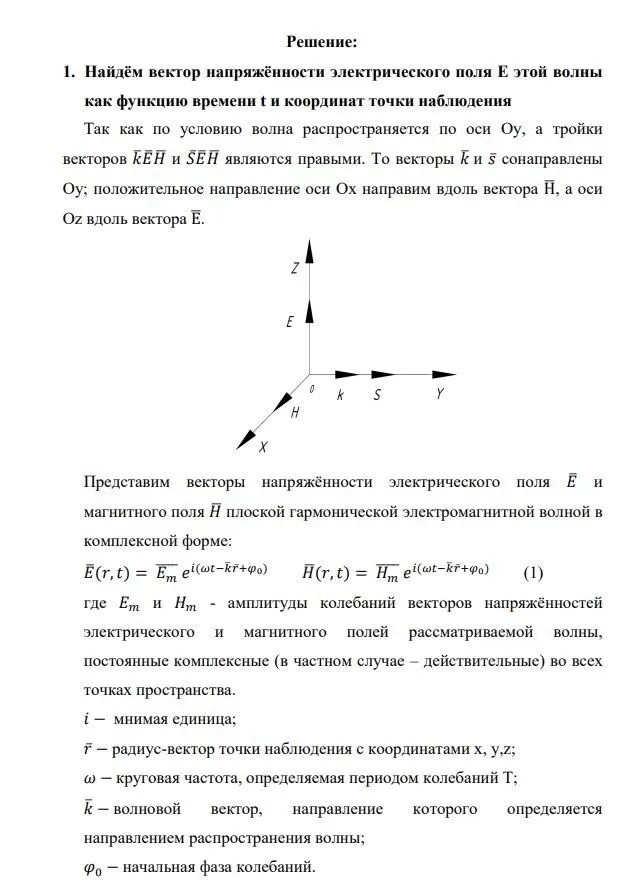 1. вектор напряжённости электрического поля E этой волны как функцию времени t и координат точки наблюдения;