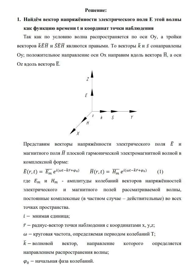 1. вектор напряжённости электрического поля E этой волны как функцию времени t и координат точки наблюдения;
