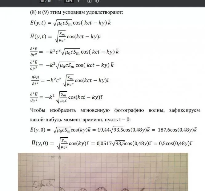 9. записать волновое уравнение для магнитной и электрической компонент рассматриваемой электромагнитной волны и изобразить схематично мгновенную фотографию этой волны.