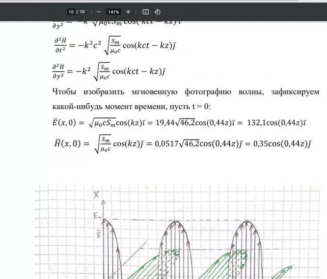 9. записать волновое уравнение для магнитной и электрической компонент рассматриваемой электромагнитной волны и изобразить схематично мгновенную фотографию этой волны.