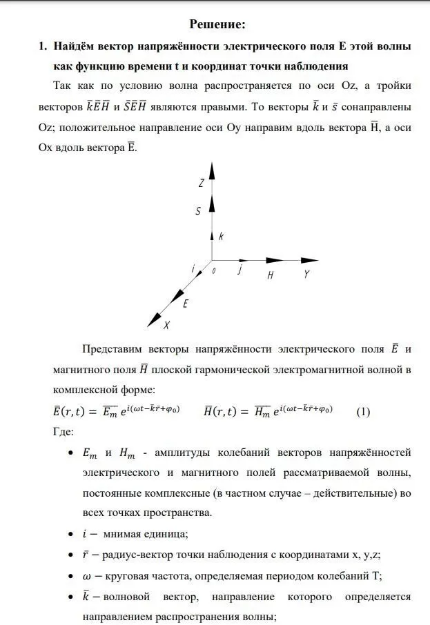 1. вектор напряжённости электрического поля E этой волны как функцию времени t и координат точки наблюдения;