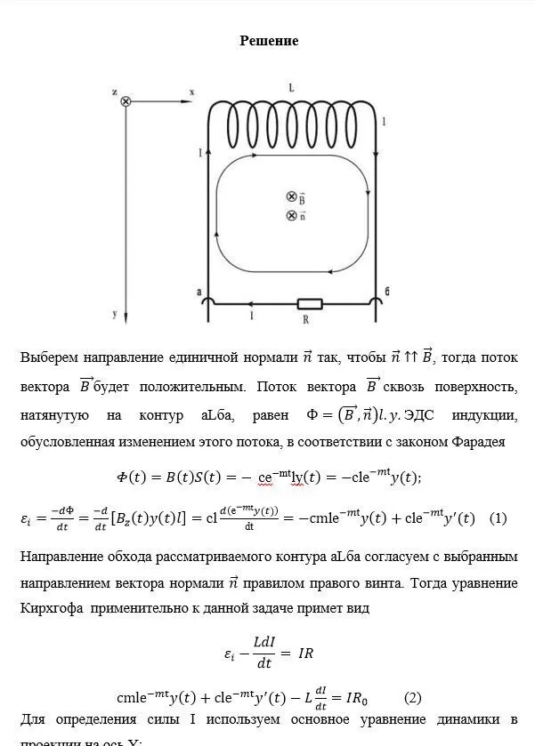 Условие:По двум гладким медным шинам скользит невесомая перемычка, к которой приложена переменная сила F(t). Сопротивление перемычки равно R0, поперечное сечение S, концентрация носителей заряда (электронов) в проводнике перемычки равна n0. Перемычка замыкает электрическую цепь, состоящую либо из конденсатора ёмкости С, либо из индуктивности L или из сопротивления R, в соответствии с рисунком. Расстояние между шинами l. Система находится в однородном переменном магнитном поле с индукцией В(t), перпендикулярном плоскости, в которой перемещается перемычка. Сопротивление шин, скользящих контактов, а также самоиндукция контура пренебрежимо малы. Ускорение перемычки в начальный момент времени конечно, а положение ее определено и равно Y(0) =Y0.