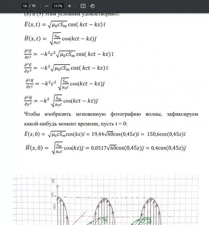 - записать волновое уравнение для магнитной и электрической компонент рассматриваемой электромагнитной волны и изобразить схематично мгновенную фотографию этой волны.