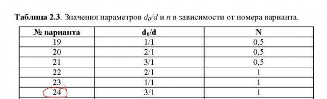 Значения параметров n = 2 и d0/d = 3/1.