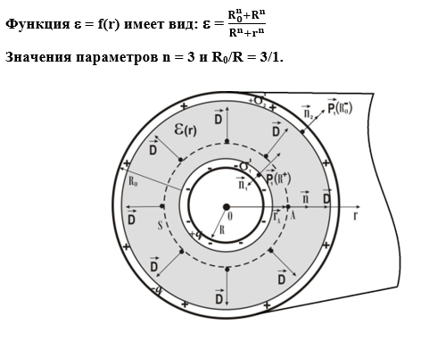 Построить графически распределение модулей векторов электрического поля Е, поляризованности Р и электрического смещения D между обкладками конденсатора. Определить поверхностную плотность связанных зарядов на внутренней s'1 и внешней s'2 поверхностях диэлектрика, распределение объёмной плотности связанных зарядов r’(r), максимальную напряжённость электрического поля Е и ёмкость конденсатора на единицу длины.
