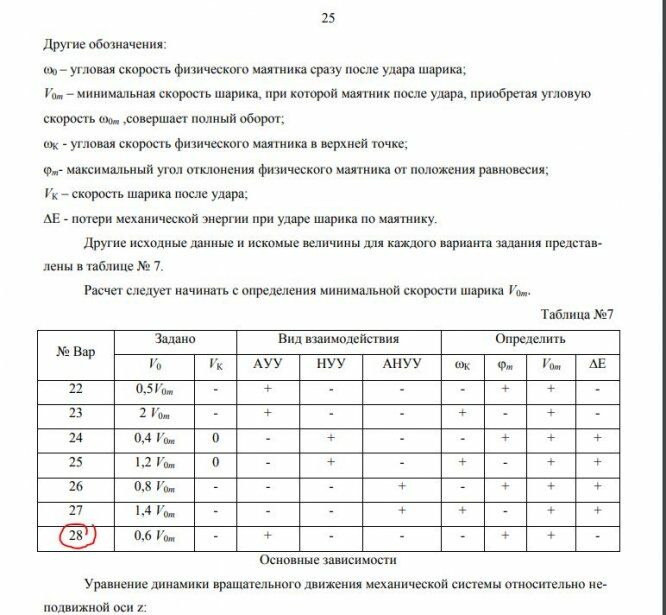 Вариант 28 - ДЗ №1 + ДЗ №2 - Динамика материальной точки - Динамика вращательного движения