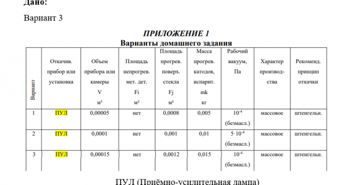 ДЗ: Расчет вакуумных систем технологического оборудования вариант 3