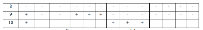 4 | + | - | - | + | + | - | - | - | + | - | - | - | - |