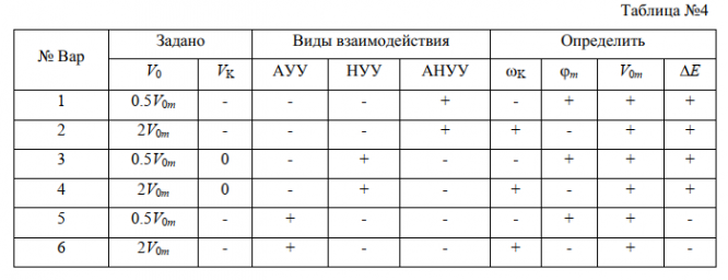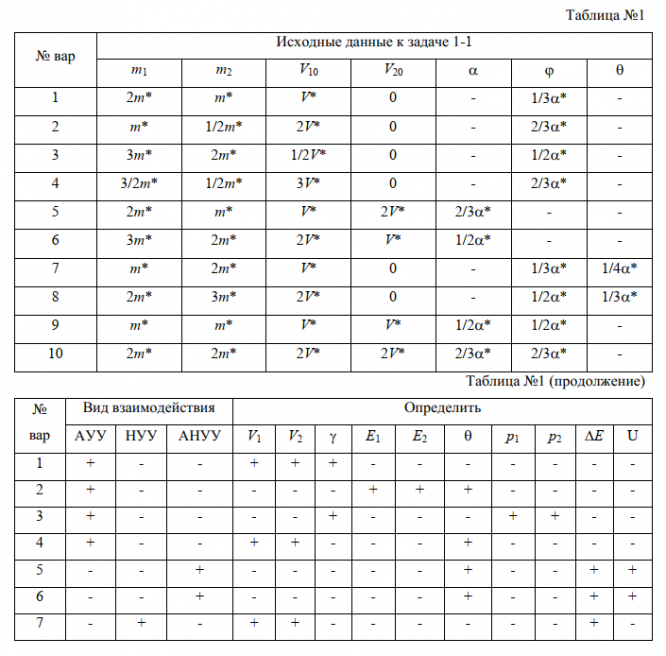 Другие исходные данные и искомые величины для каждого варианта задания представлены в таблице: