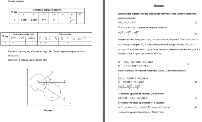 В нашем случае удар абсолютно упругий. До соударения вторая частица покоилась.