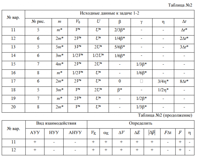 Другие исходные данные и искомые величины для каждого варианта задания представлены втаблице.