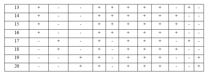 17 | - | + | - | + | - | + | + | + | - | + | - |