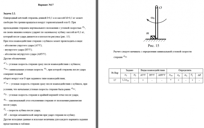 ДЗ 1: Динамика материальной точки + Динамика вращательного движения вариант 17