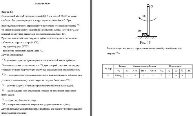 ДЗ 1: Динамика материальной точки + Динамика вращательного движения вариант 20