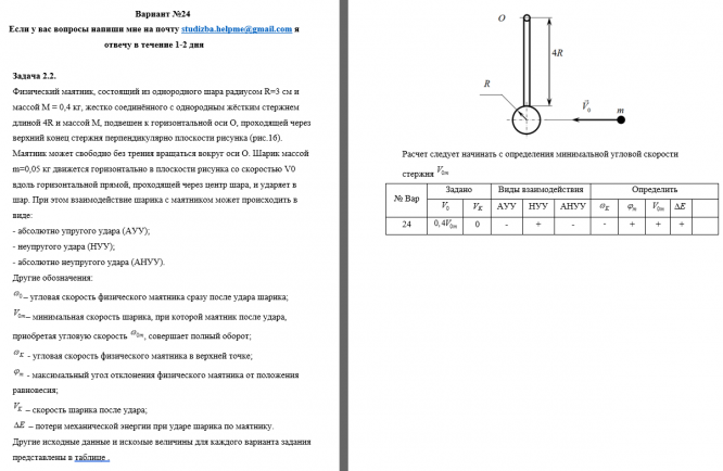 ДЗ 1: Динамика материальной точки + Динамика вращательного движения вариант 24