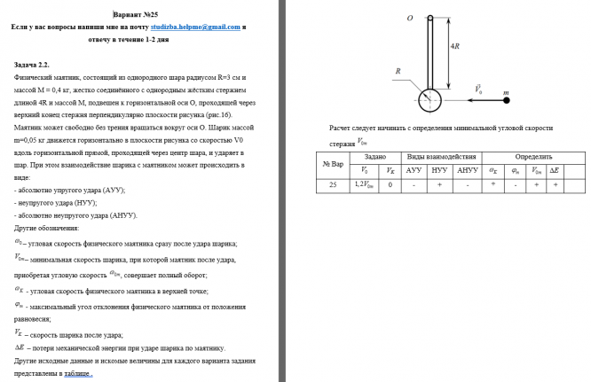 ДЗ 1: Динамика материальной точки + Динамика вращательного движения вариант 25