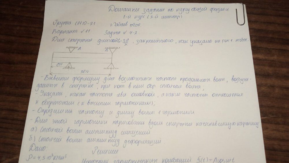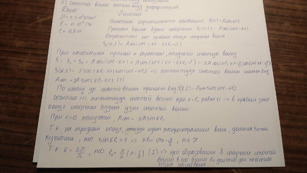 - Вывести формулу для возможных частот продольных волн, возбуждаемых в стержне, при которых в нём образуется стоячая волна;