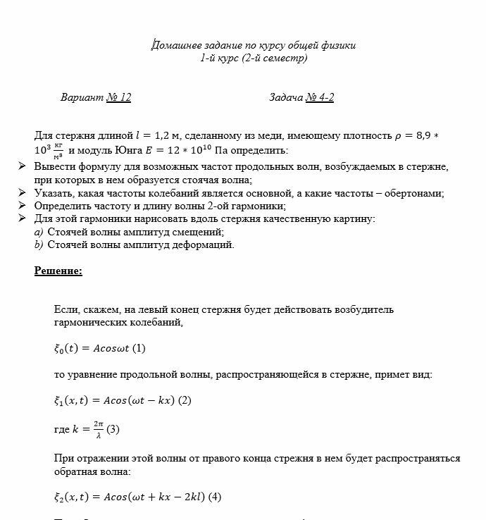 - Вывести формулу для возможных частот продольных волн, возбуждаемых в стержне, при которых в нём образуется стоячая волна;