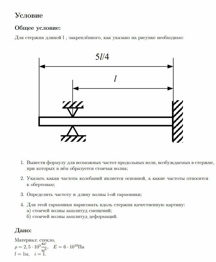- Вывести формулу для возможных частот продольных волн, возбуждаемых в стержне, при которых в нём образуется стоячая волна;
