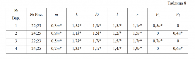 Другие исходные данные и начальные условия задачи для каждого варианта задания приведены в табл. 8 – 15.