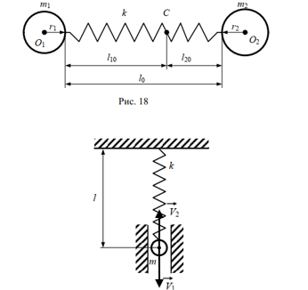 Задача 3 Вариант 5 Механическая система для этой задачи расположена на горизонтальной плоскости и представлена на рис. 18. Значения массы шариков, длина и жёсткость, соединяющих их пружин, а также другие исходные данные приведены в табл.9. Определить: положение центра масс МС; жёсткость левой и правой частей пружины, длины которых равны l10 и l20; приведённую массу МС; круговую частоту и период собственных незатухающих колебаний. Трением шариков о контактную горизонтальную плоскость пренебречь. Дополнительно (в соответствии с общими условиями задачи 3) рассчитать все требуемые величины и вывести уравнение затухающих колебаний вертикального пружинного маятника (см.