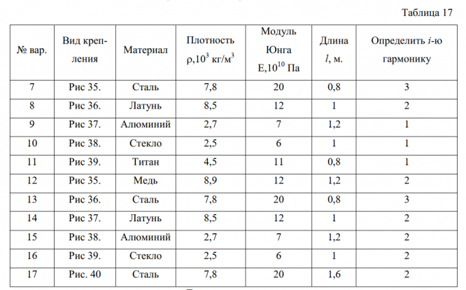 Исходные данные для каждого варианта задачи представлены в таблице № 17.