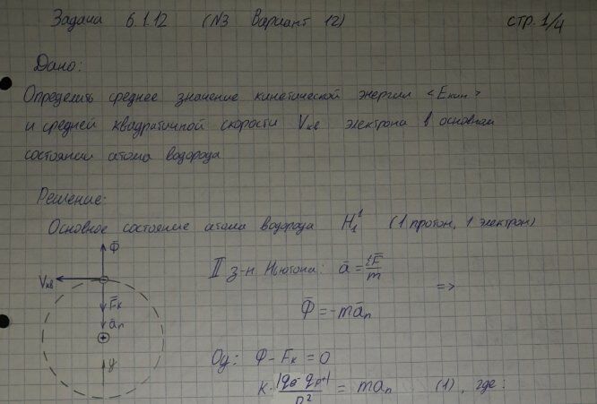 6.1.12. Определите среднее значение кинетической энергии  E кин  и средней квадратичной скорости электрона кв v в основном состоянии атома водорода.